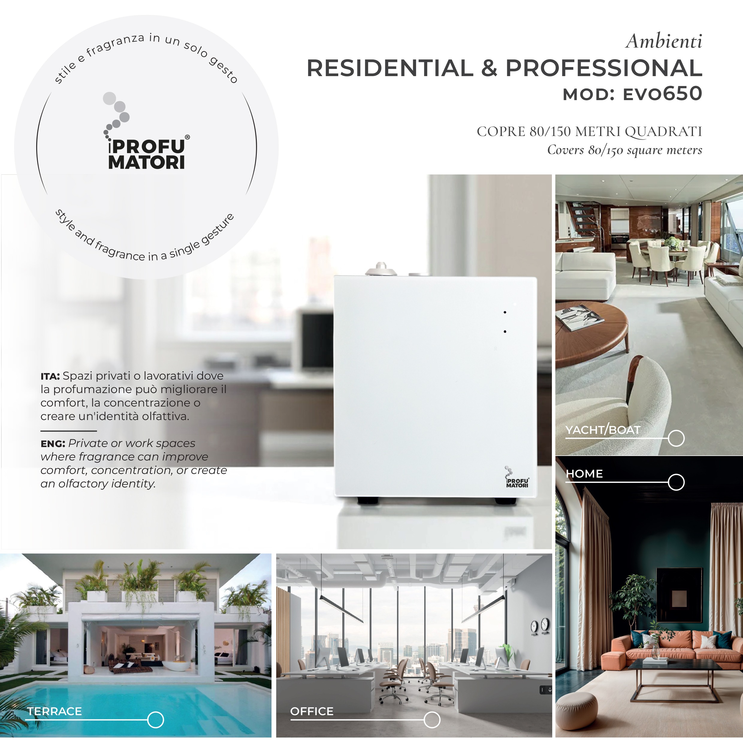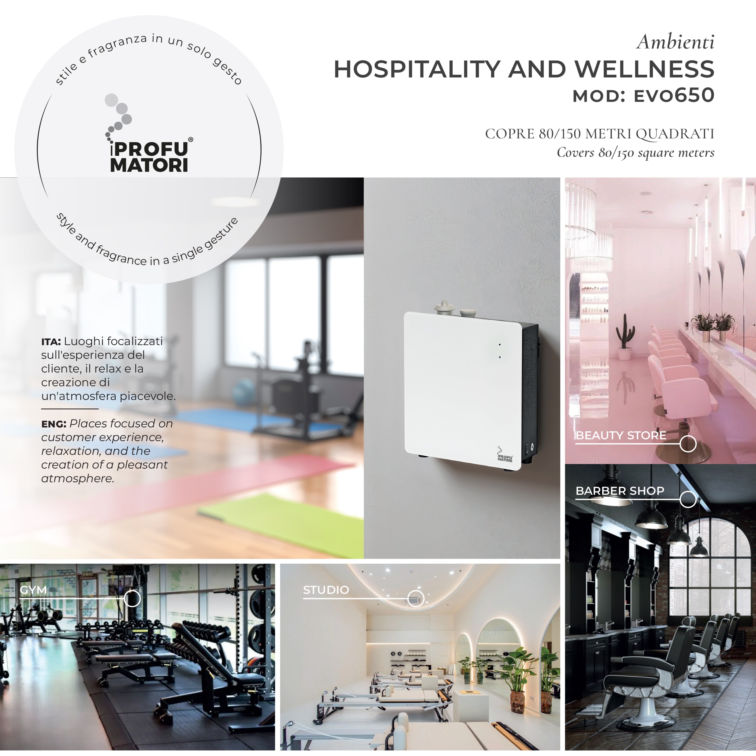 Con EVO650, non stai solo acquistando un diffusore, ma un alleato per migliorare la qualità dell’ambiente in cui vivi o lavori. Ogni dettaglio è pensato per offrire comfort, eleganza e benessere. Profuma, arreda e valorizza i tuoi spazi con stile.