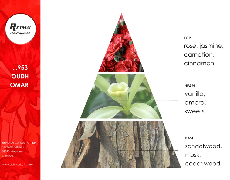 L’Oudh Omar è una fragranza intensa e avvolgente, calda e decisa indicata per ambienti di lusso. Può essere consigliata anche per luoghi dediti al benessere, all’accoglienza e alle esposizioni come hotel, sale congressi, centri benessere e SPA e nelle boutique in generale. Essendo una profumazione orientale, per il suo velo di mistero e il suo fascino dovuti alle vibrazioni legnose dell’oudh, è l’ideale per essere diffusa nelle agenzie di viaggi, poiché stimola nel cliente il desiderio di visitare luoghi mai visti.