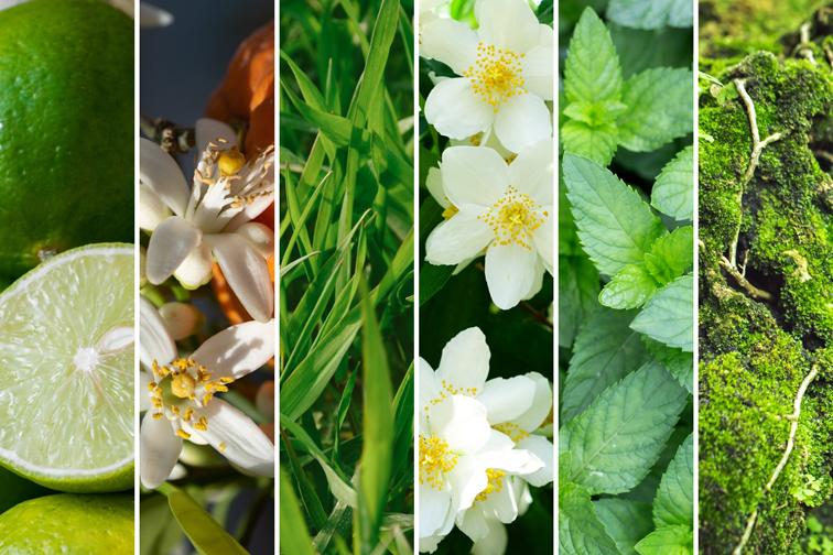 La fragranza si apre con le fresche e briose note di lime e fiori d’arancio, miscelate con note verdi. Le floreali note di cuore, mix di gelsomino e geranio, sono rese più vivaci dalla menta. La composizione si completa con le intense e aromatiche note del legno di cedro, muschio e ambra.